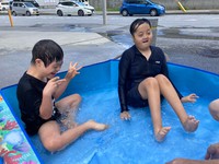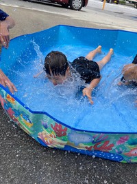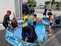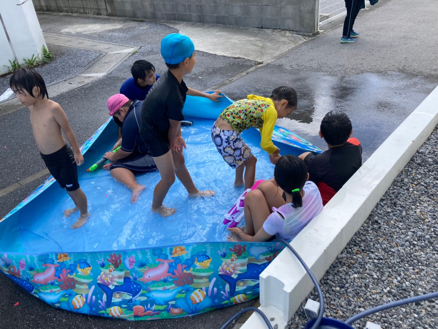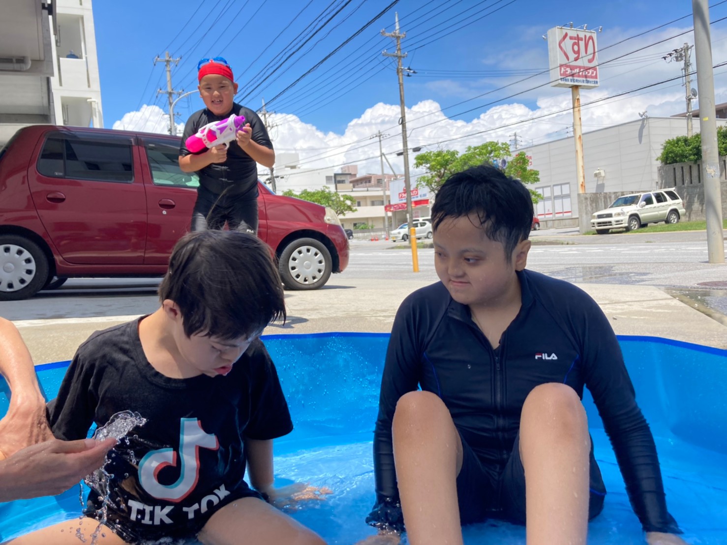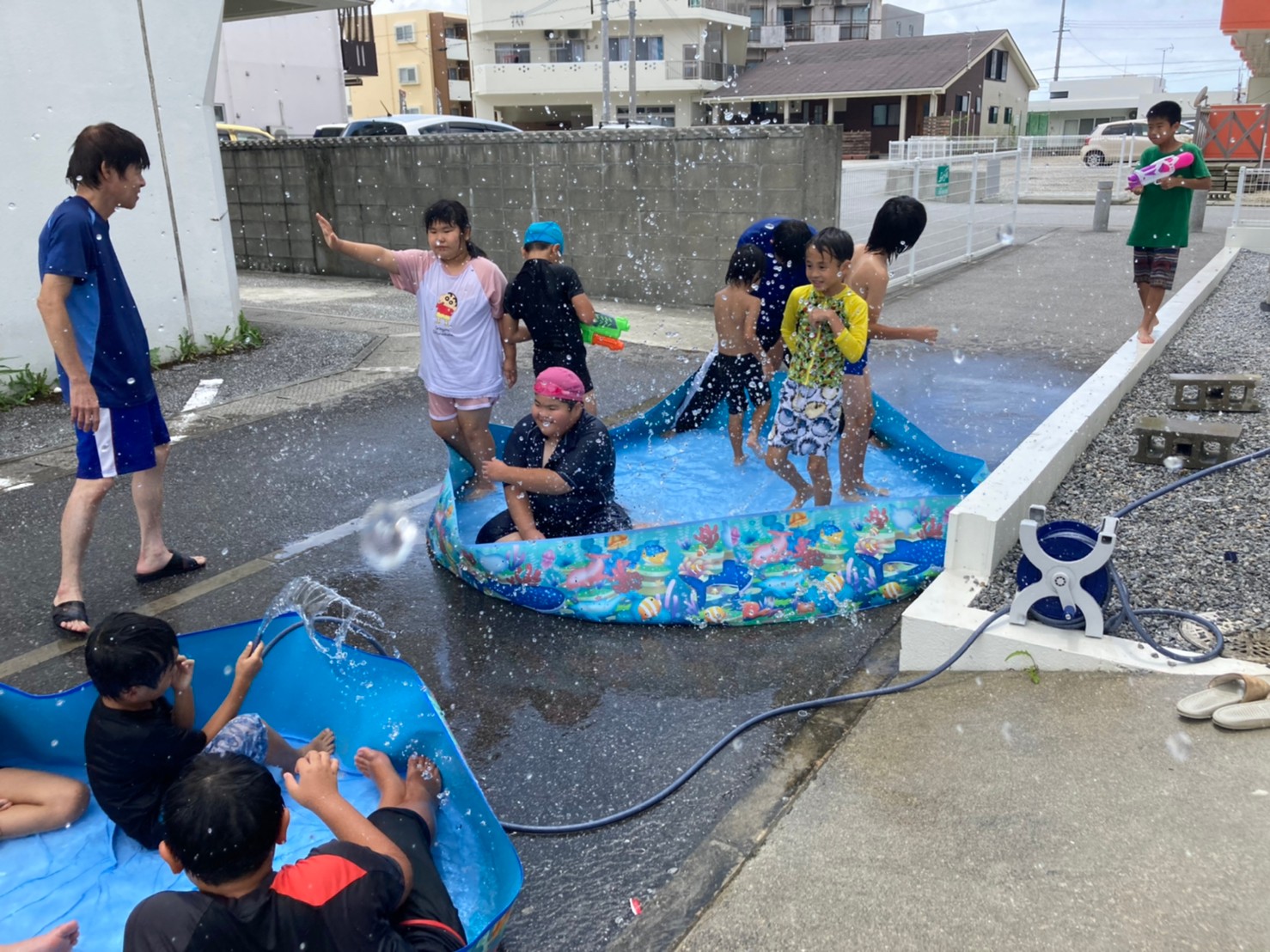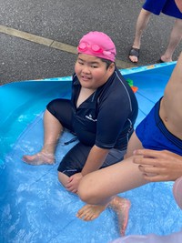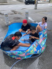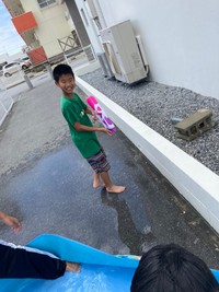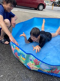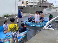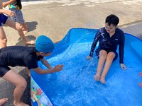 事業所のちょっとしたスペースで水遊び!(^^)!