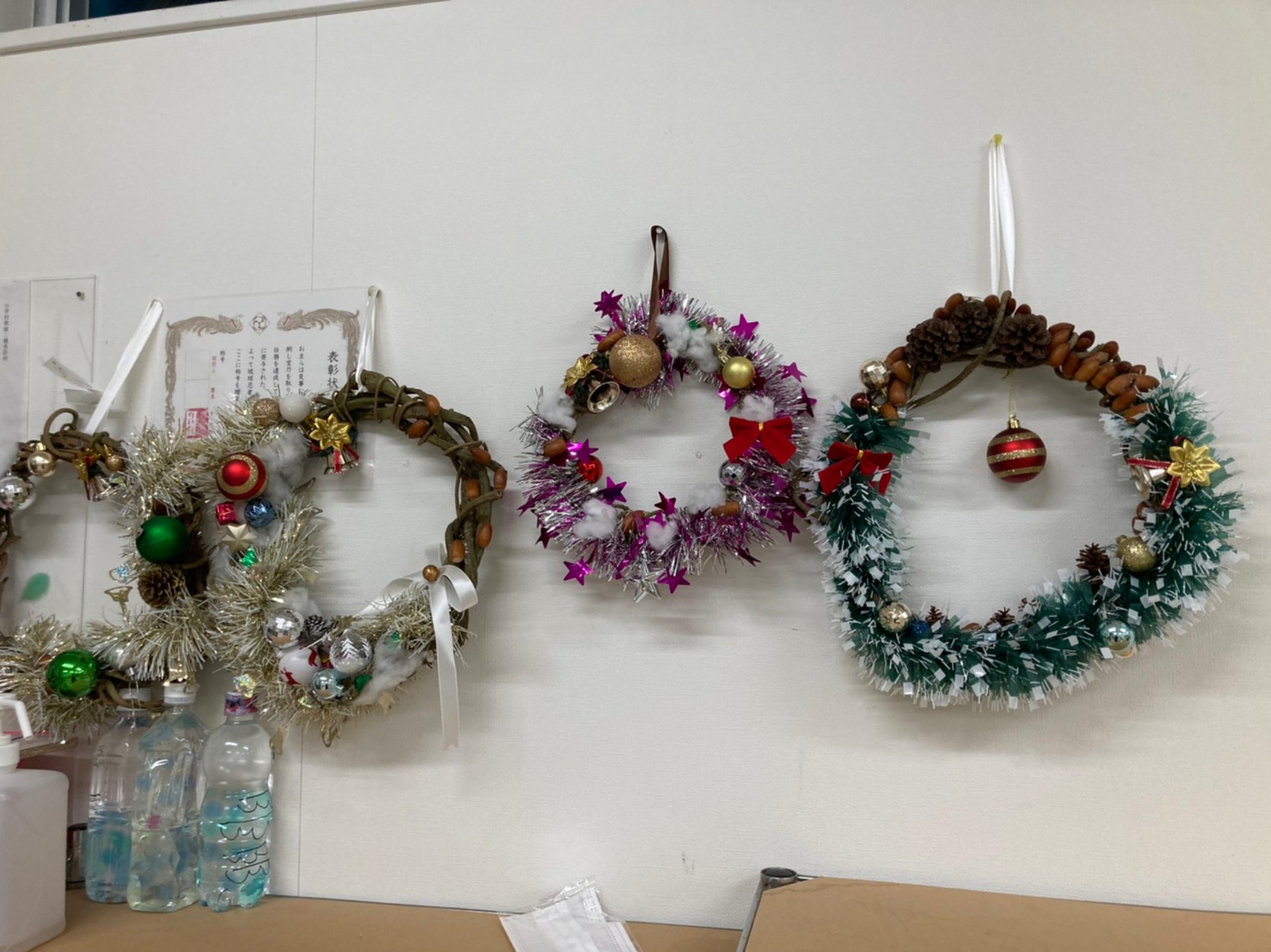 こちらミライでは、先週からクリスマスリース作りを行っています。