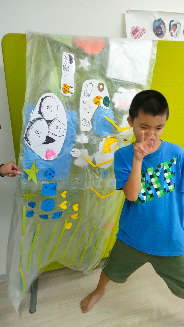完成ーーー!!!みんなで作りあげた巨大鯉のぼり(⋈◍>◡<◍)。✧♡