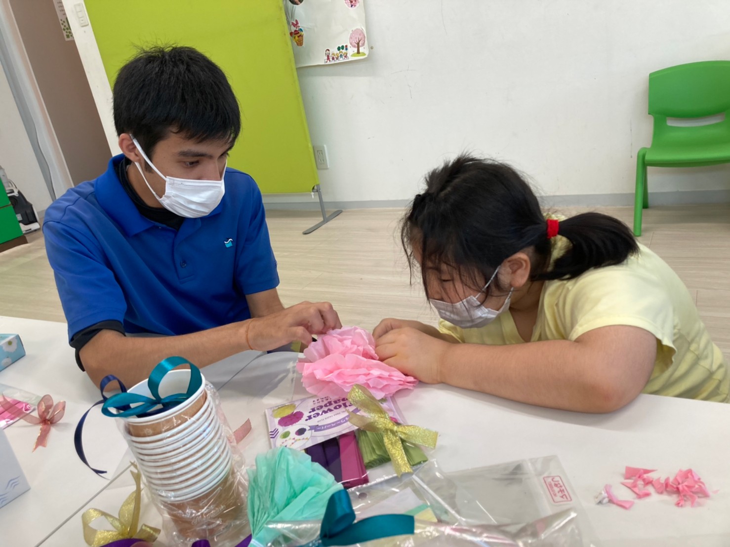 お花を広げたり、お手紙書いたり...