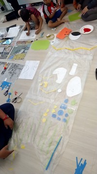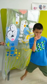 ビニール袋をカットして、鯉のぼりの形にしていきます。