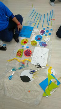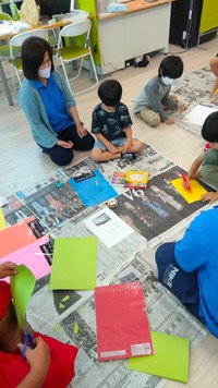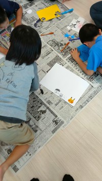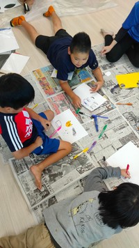 それぞれ好きな絵を、クレヨンや絵の具を使って