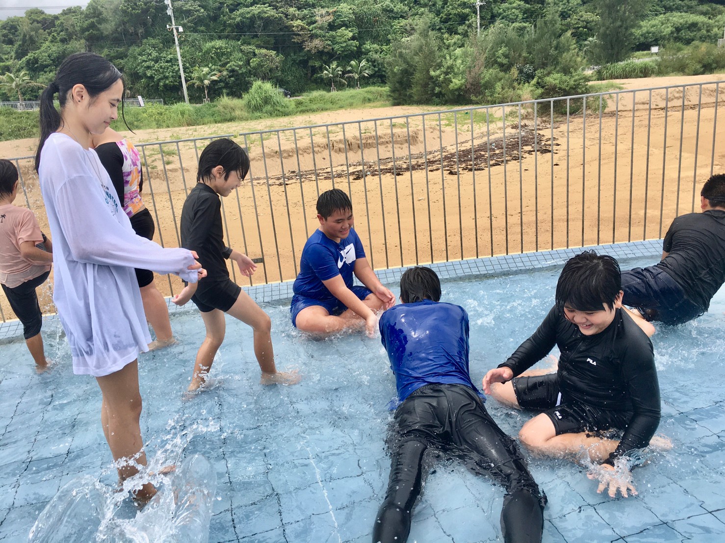 まず、直ぐに始まるのは、水の掛け合い( *´艸`)