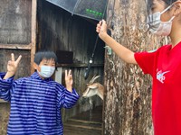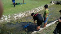 川にいるグッピーやエビを獲っています(^_-)-☆