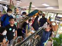 少し怖がる子もいれば、喜んで触る子もいます(=^・^=)