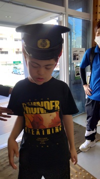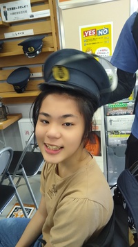 駅員さんの帽子を被ってハイポーズ(*^^)v