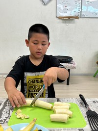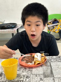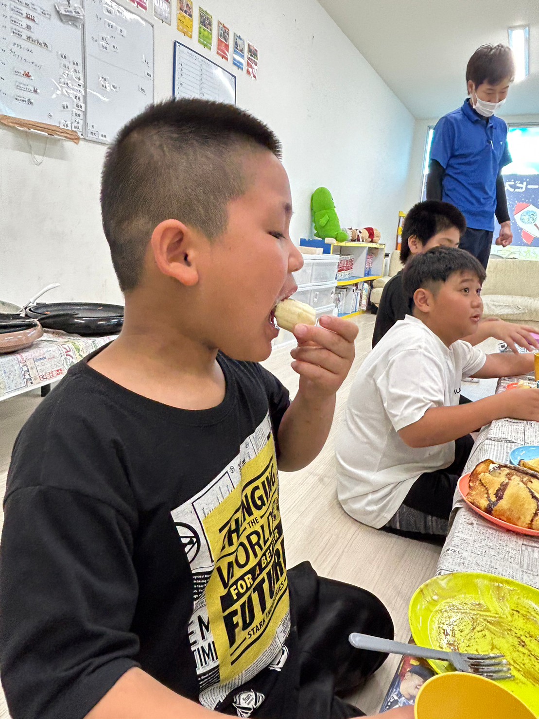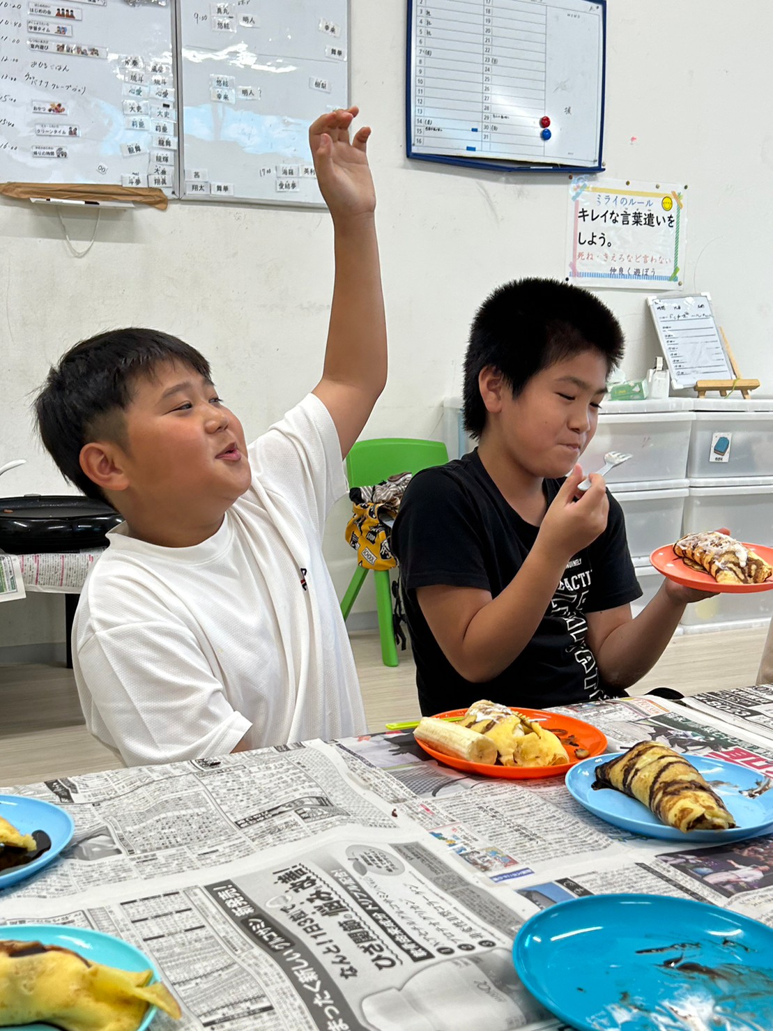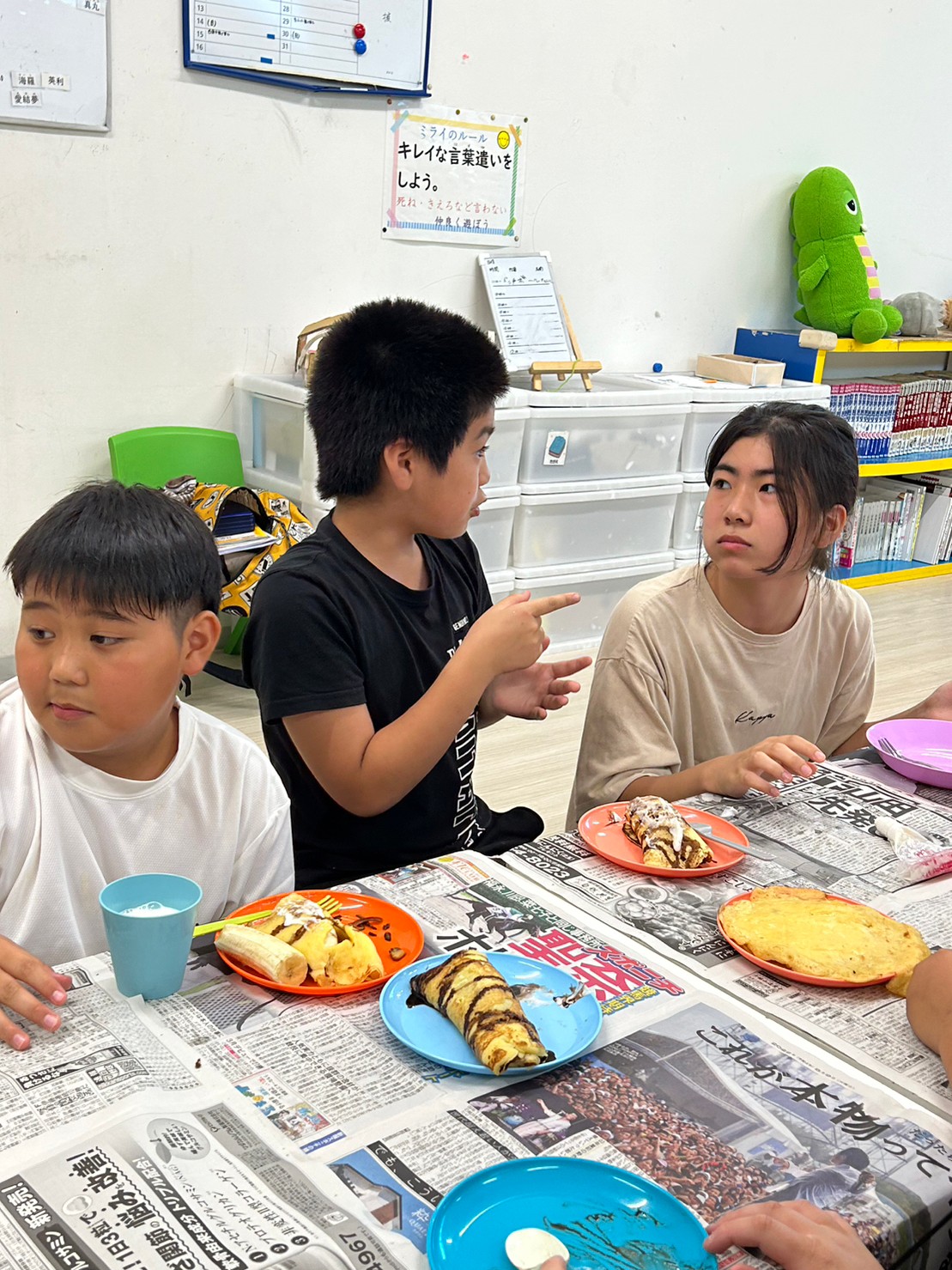 自分たちで焼いた生地に、クルクルと上手に包んでいます(^^♪