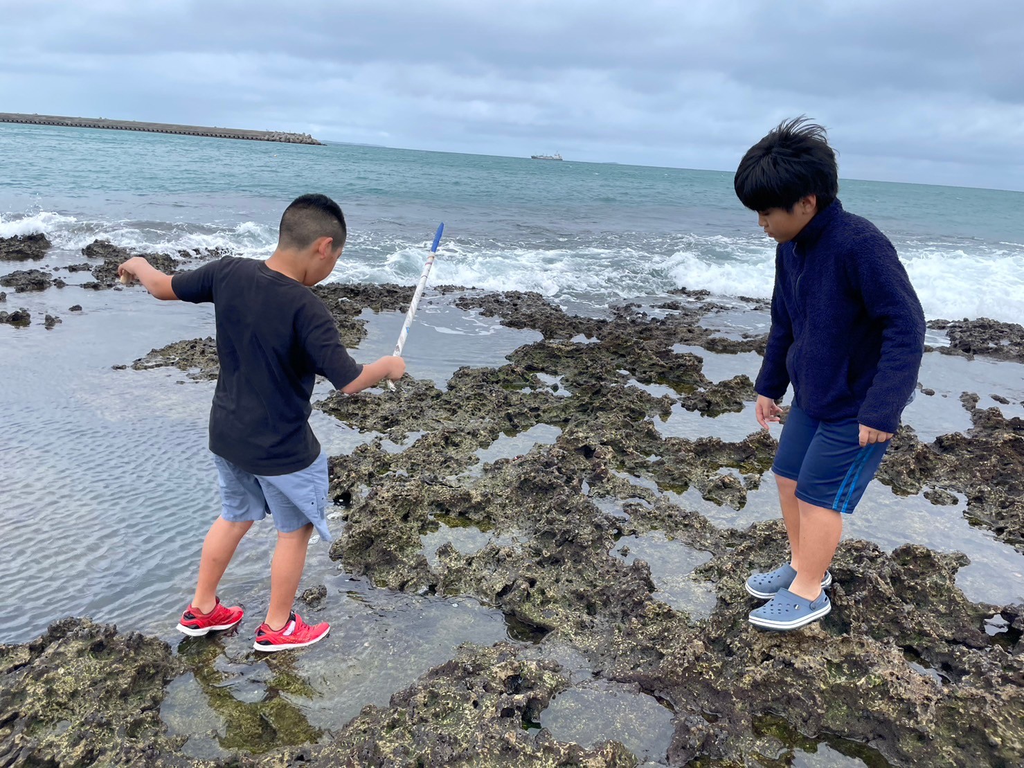 潮の引き時間を狙って、、、岩の隙間にけっこう魚が⁉