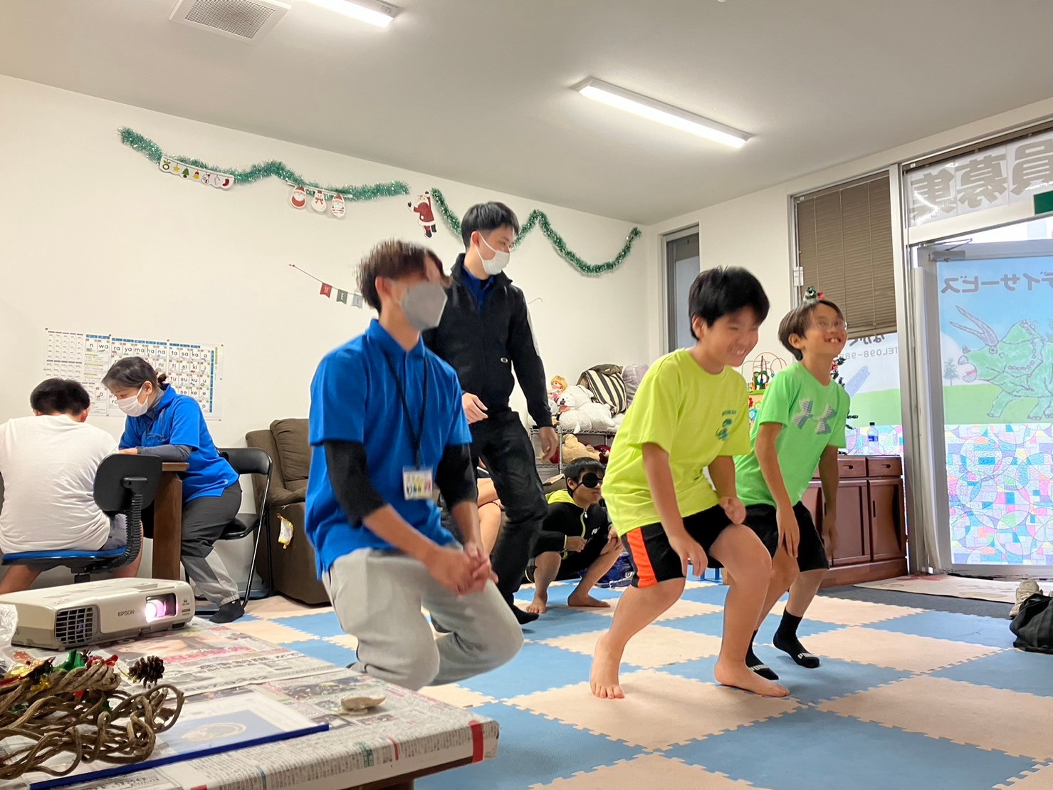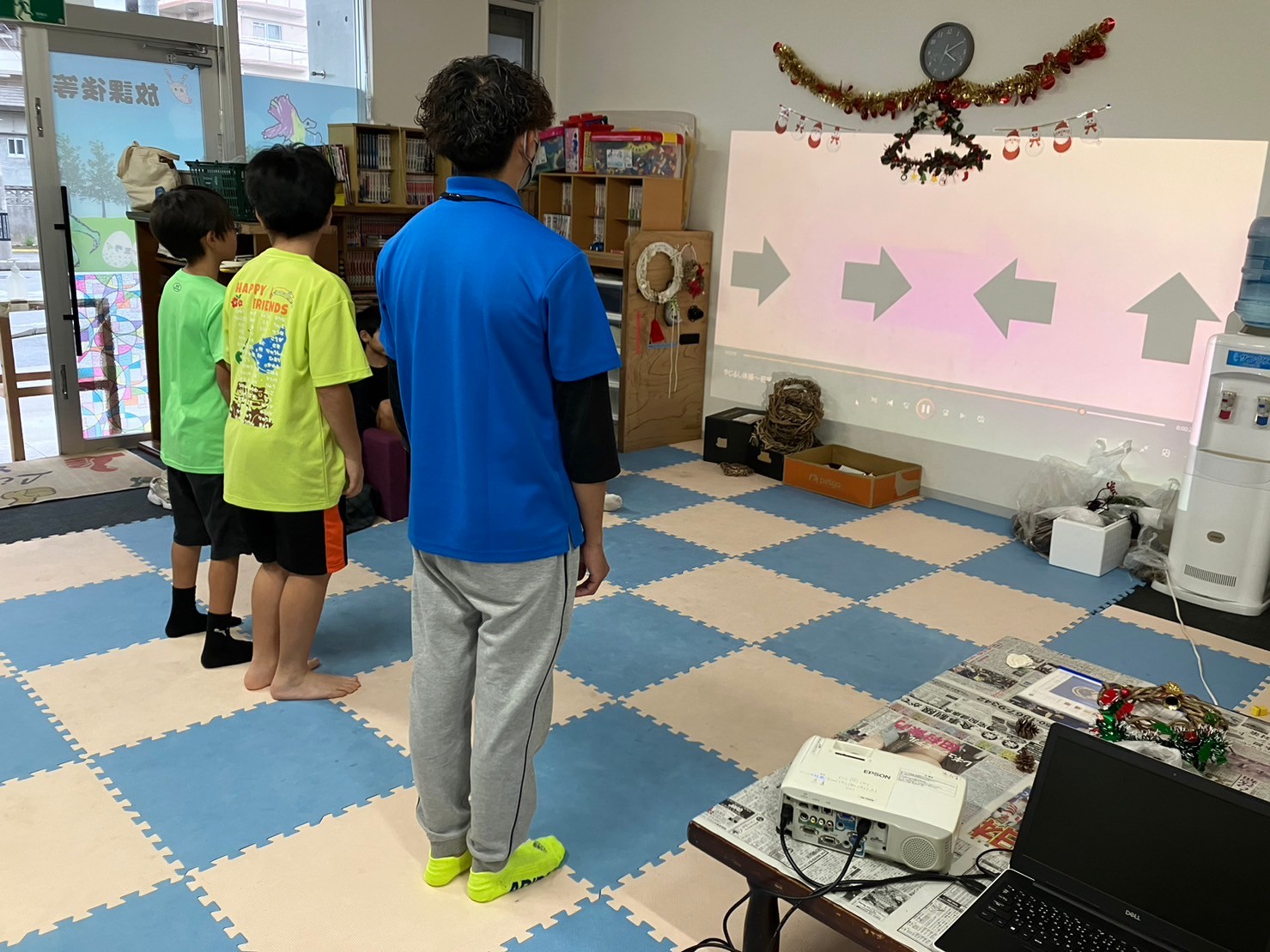やじるし体操では、矢印の向きをすばやく把握して、正しく体を動かせるトレーニングです。 『できたーー』『あれ?はやいー』など、言いながら夢中になっています(*^^*)
