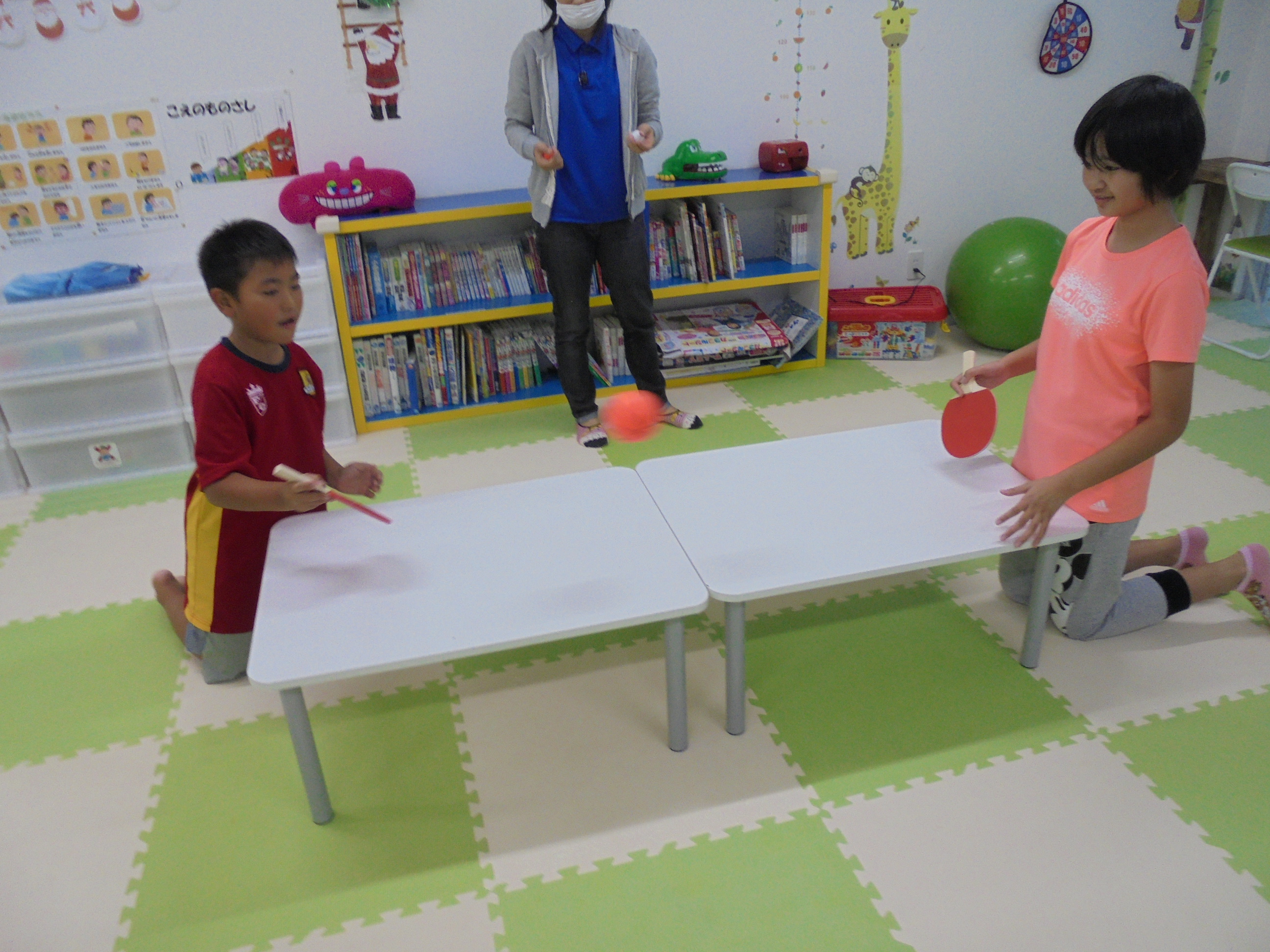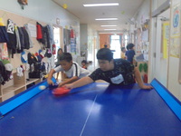 本物の卓球台にも大喜び(*^^*) いつもの卓球台↓↓