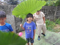 ミライの畑を整備していると思ったら、トトロになっちゃった♡^m^ww