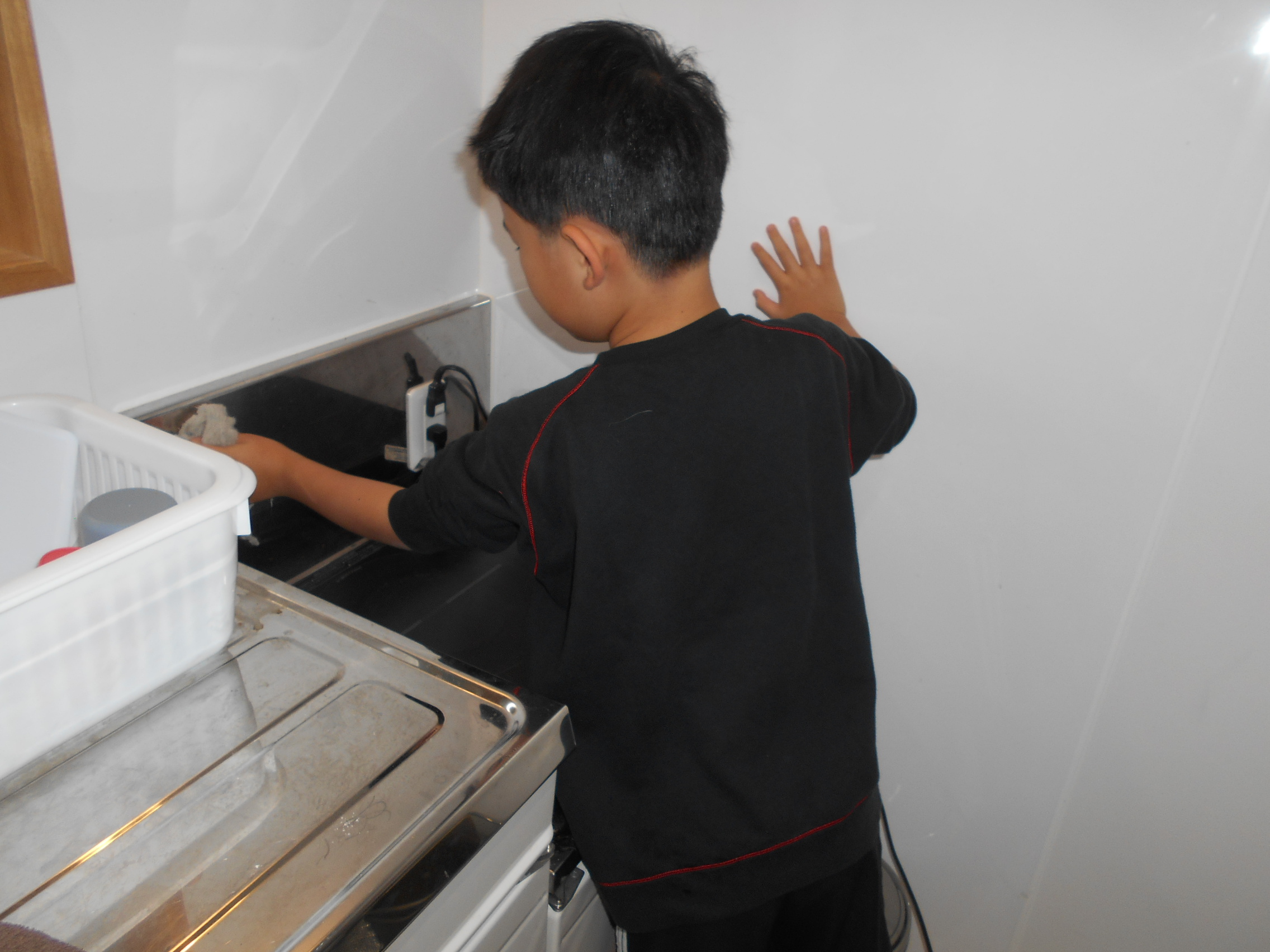 キッチンの掃除・オモチャの整頓・棚の拭き掃除。