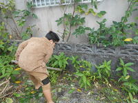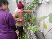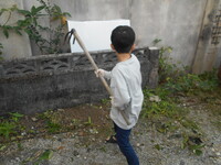 顔は真剣、重いクワを持ちグラグラしているミライっこが可愛い♡♡