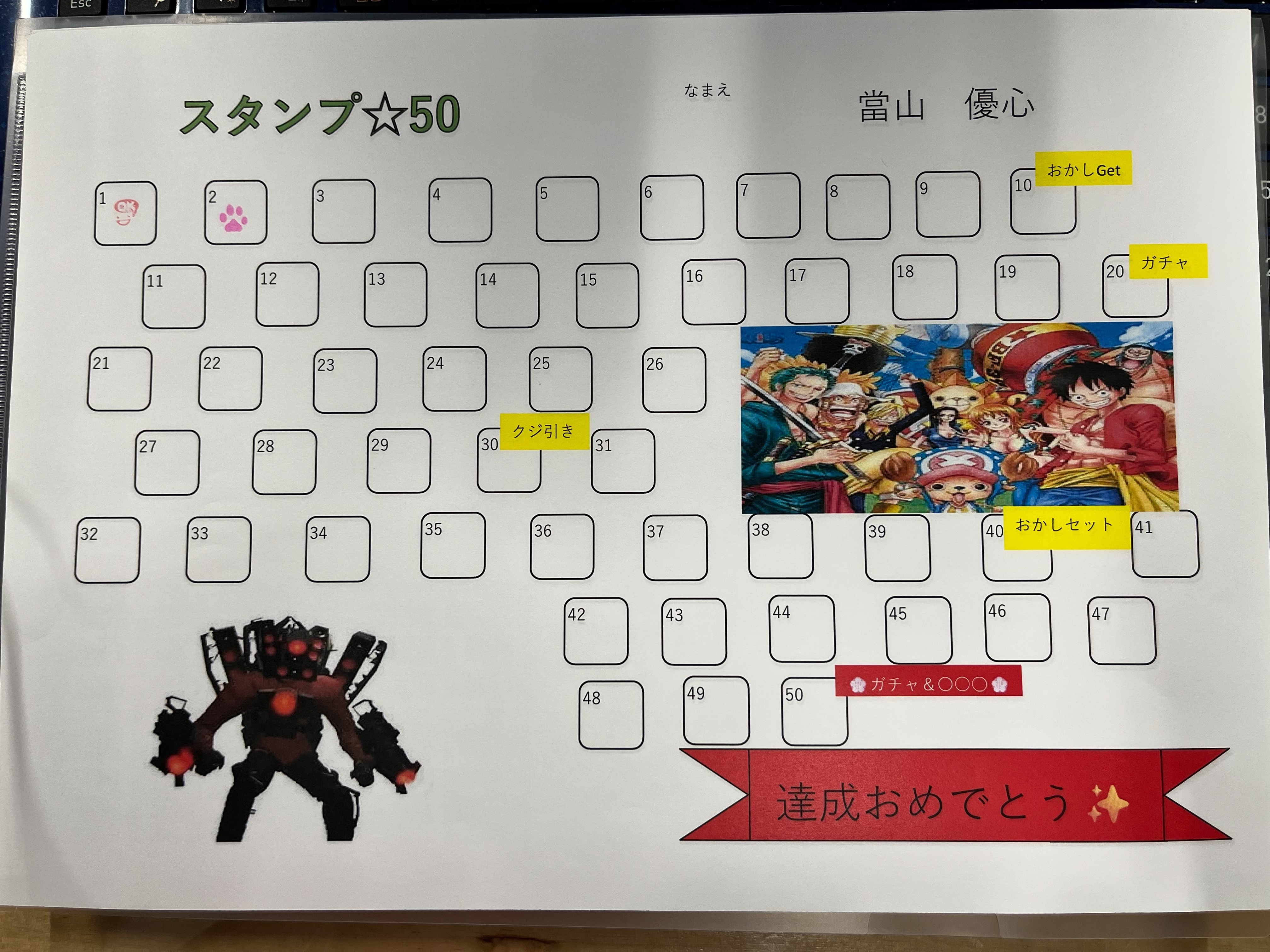 スタンプが貯まれば、色々な✨がんばり賞✨をGet☆彡