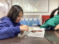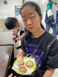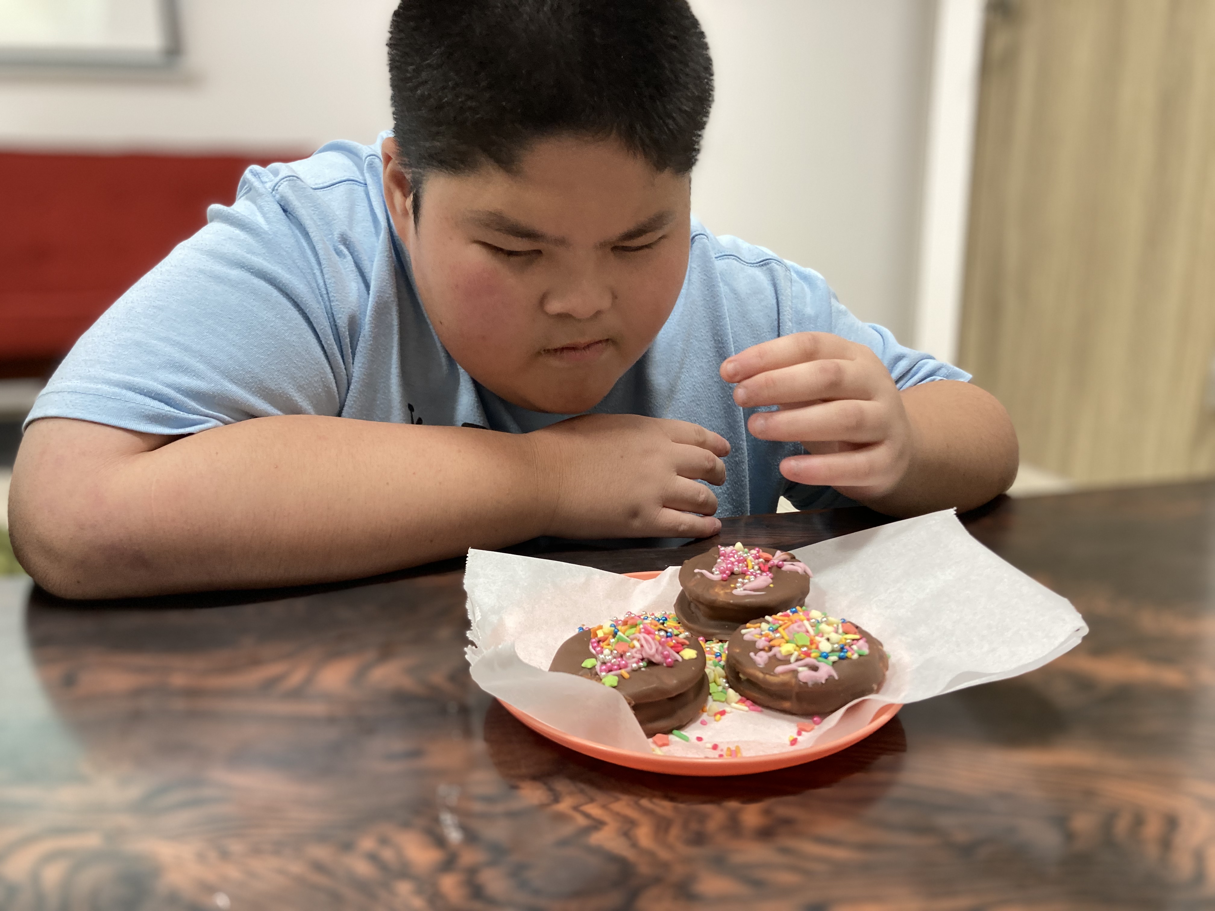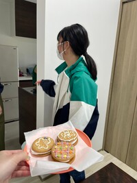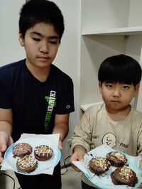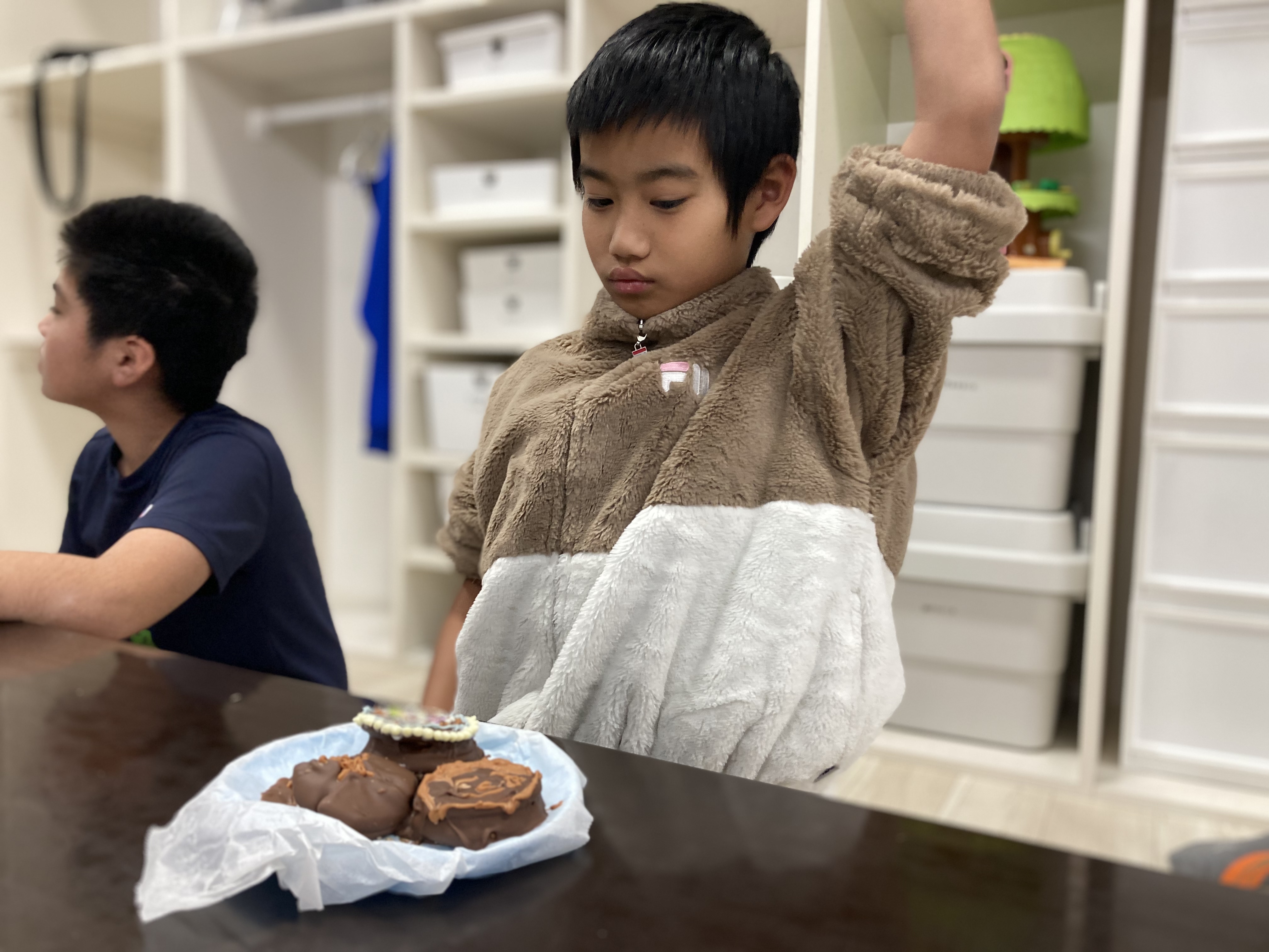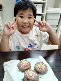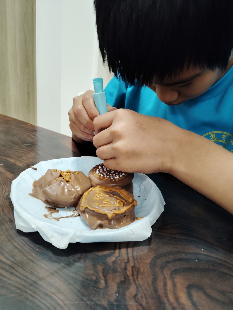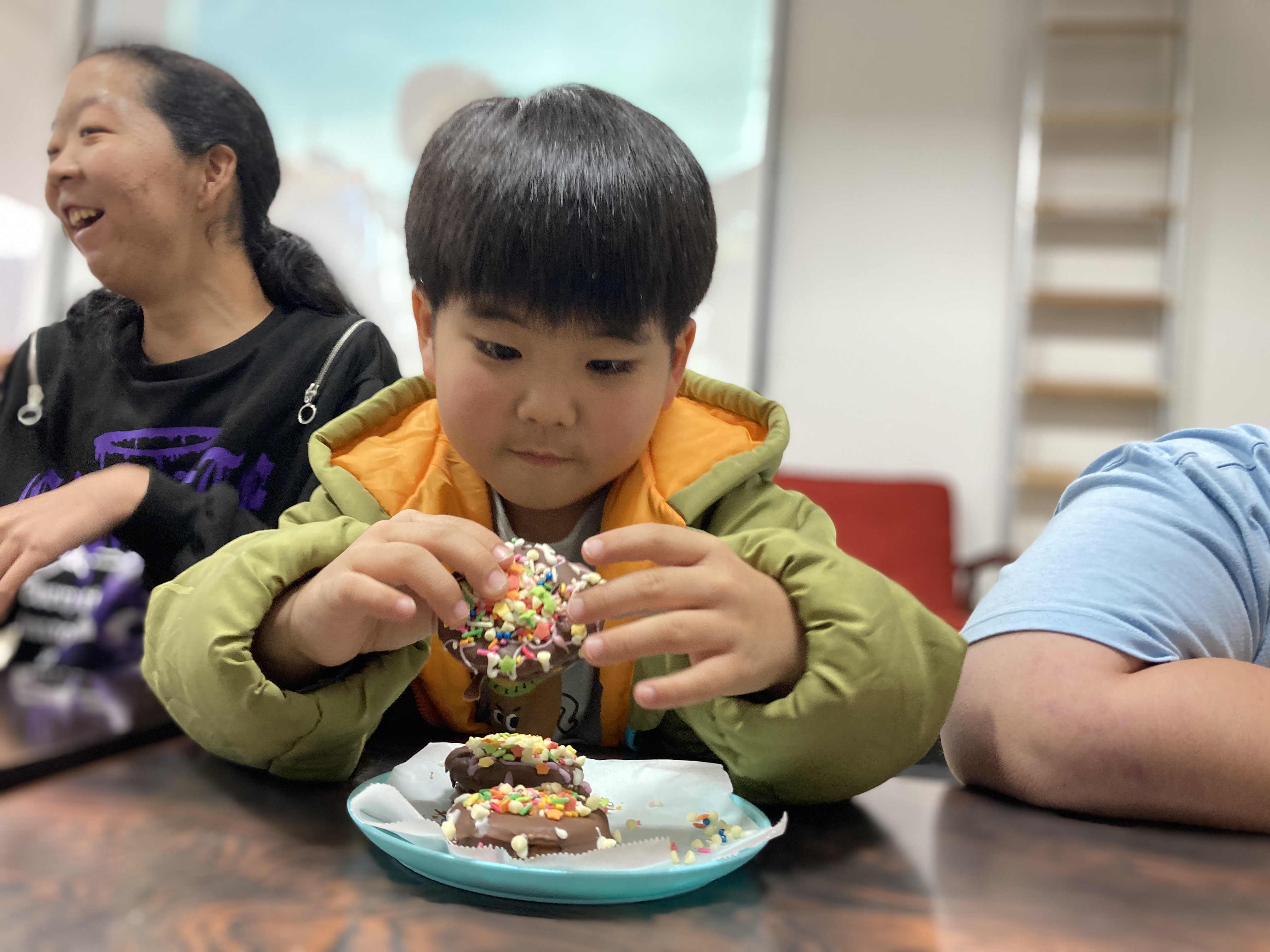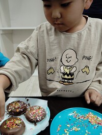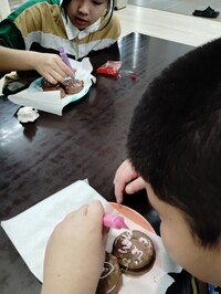 トッピングやチョコペンで楽しそうに『この色にしよ~』『この絵どう?見て~』と