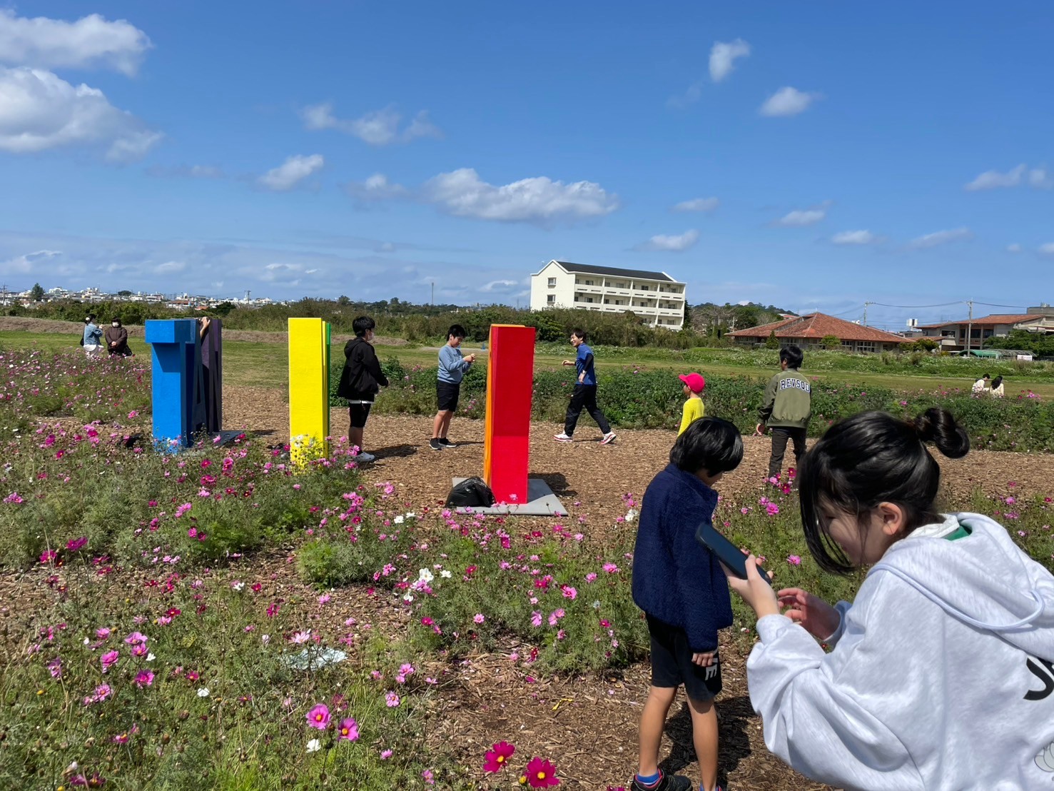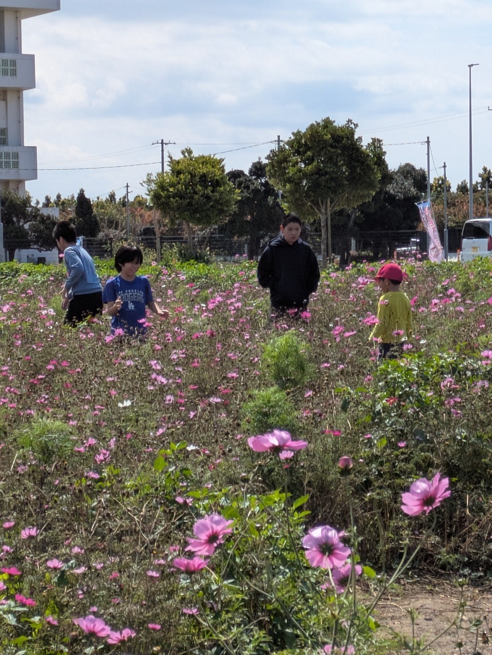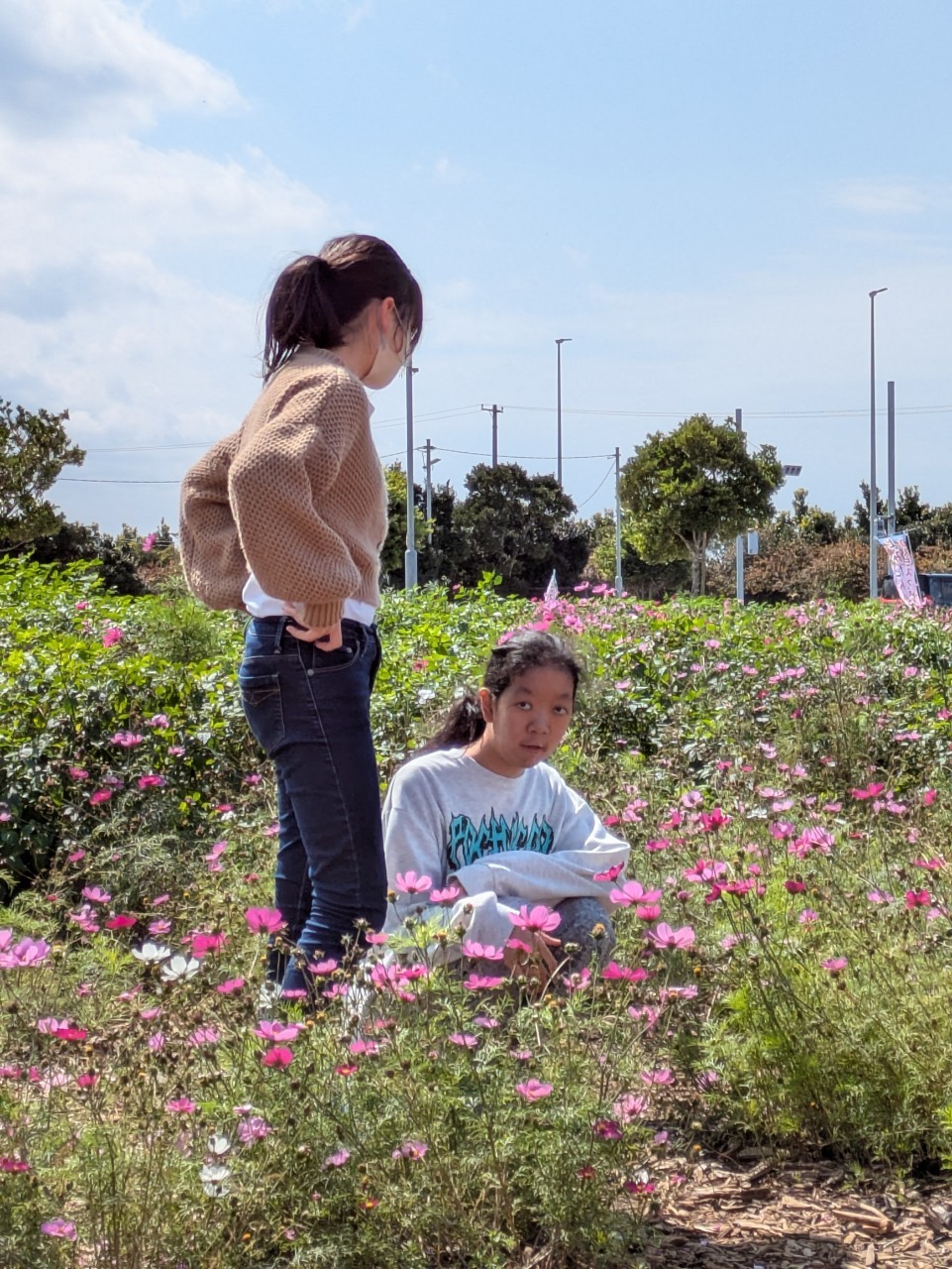 コスモスに囲まれて、お弁当タイム~~(*^▽^*)