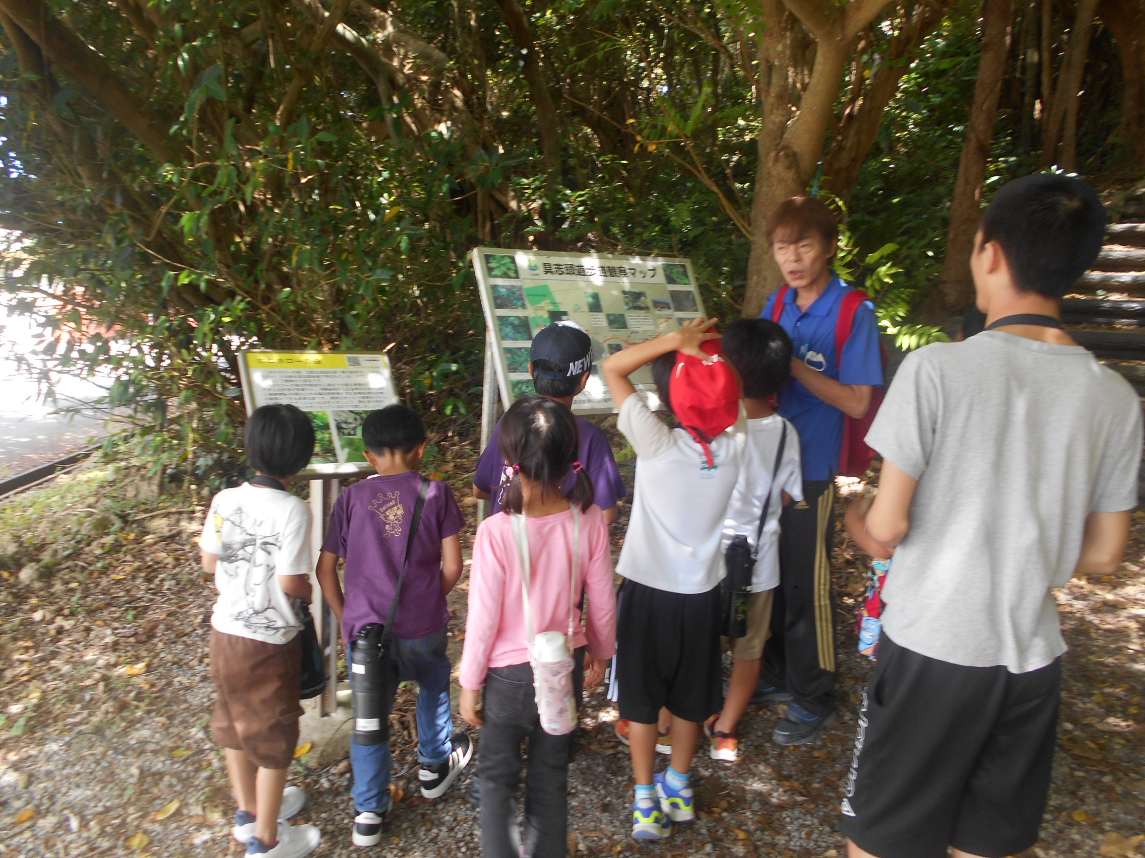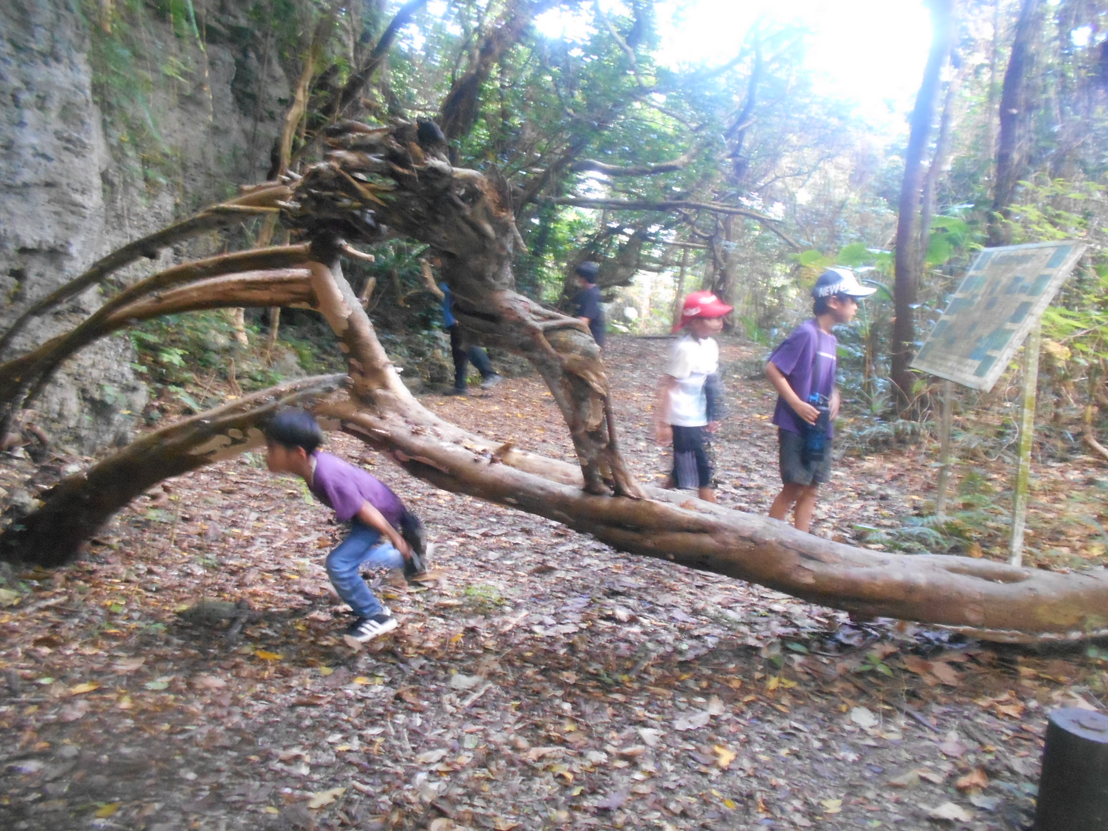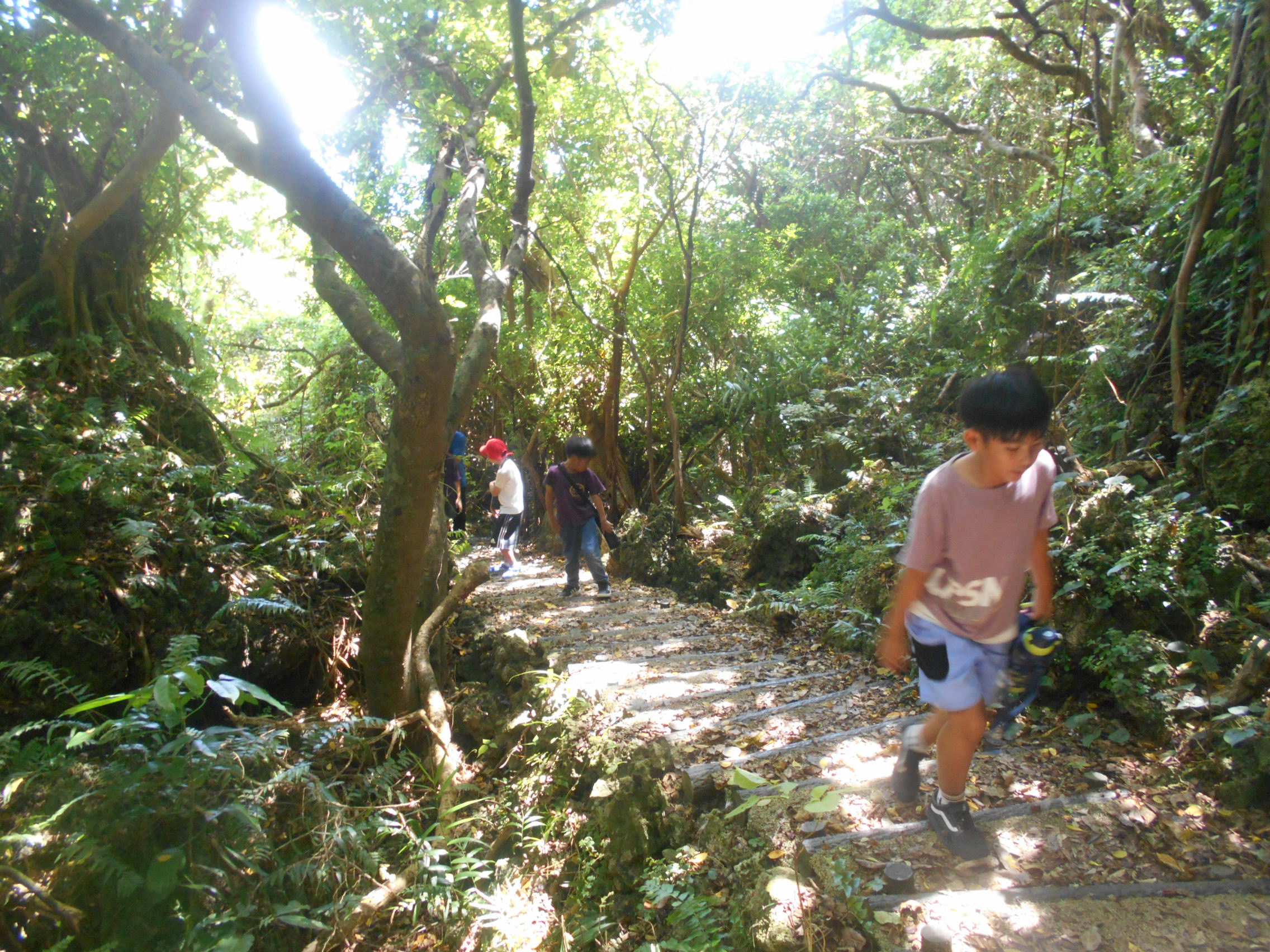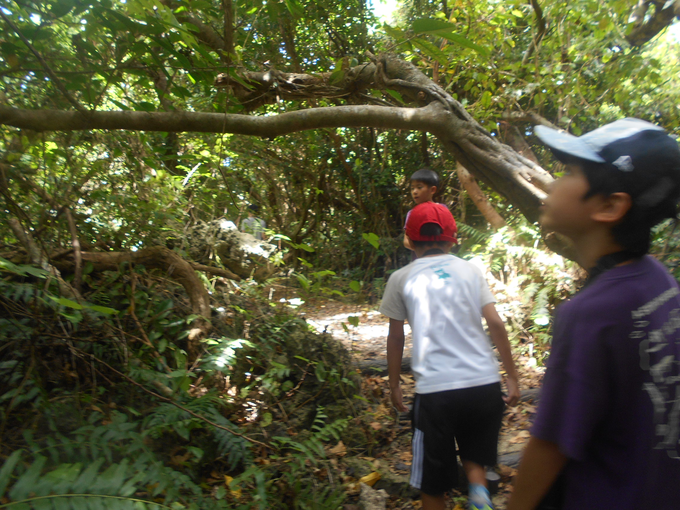 空は太陽カンカンで暑いけど、ガジュマルやヤブニッケイの幹がカーテンになってて日差しの入り方がさいこー!!!