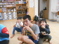 ハロウィン鬼を外に追い出した後は、ミライよなばる恒例の笑っちゃ、喋っちゃNG恵方巻を食べちゃおッ!!