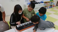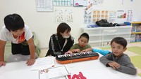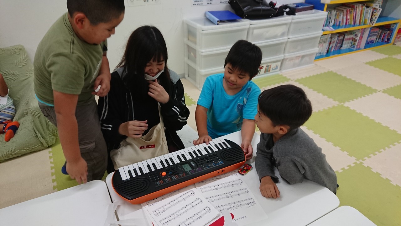 クリスマスの雰囲気つくり・・・電子ピアノを出すとピアノの周りにみんな集まってます。興味津々(>_<)