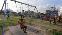 ブランコ、鬼ごっこ、すべり台などで遊びました。