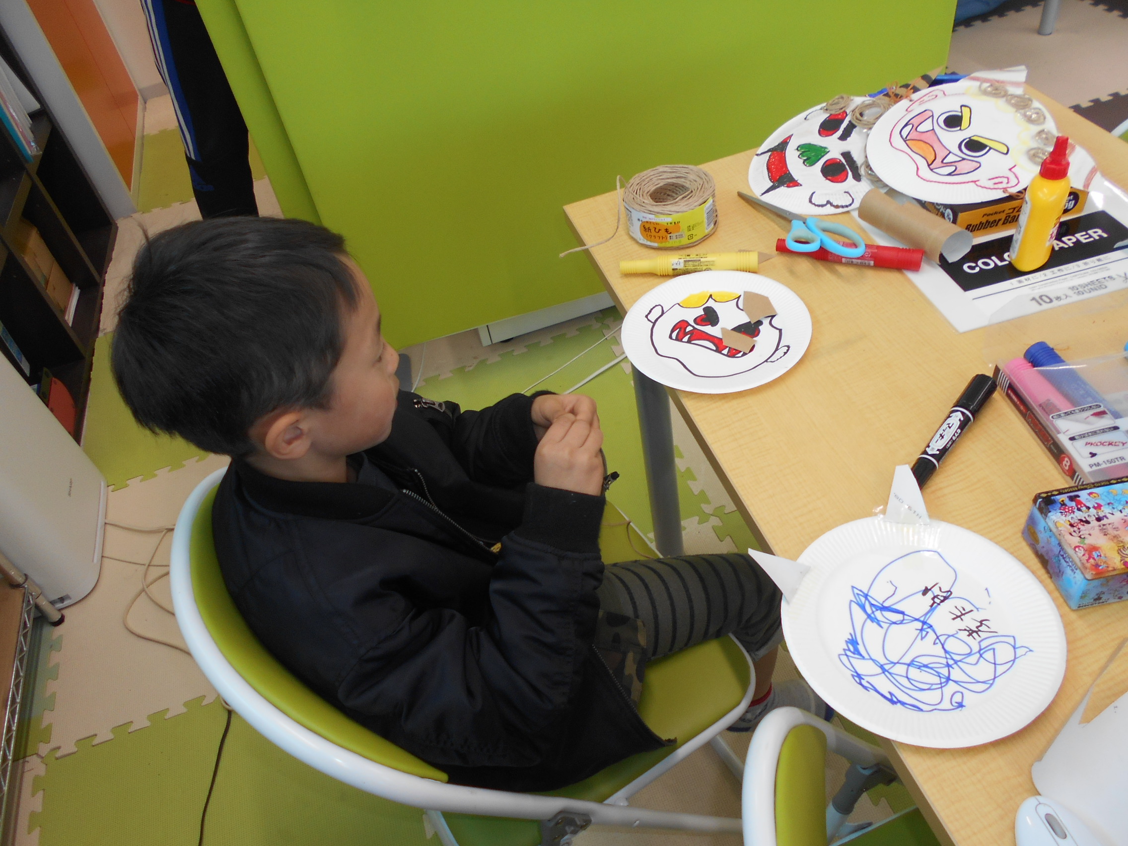 節分の日に鬼が来るので、鬼を驚かせようと思い、みんなで鬼のお面作りをしました(*^-^*)