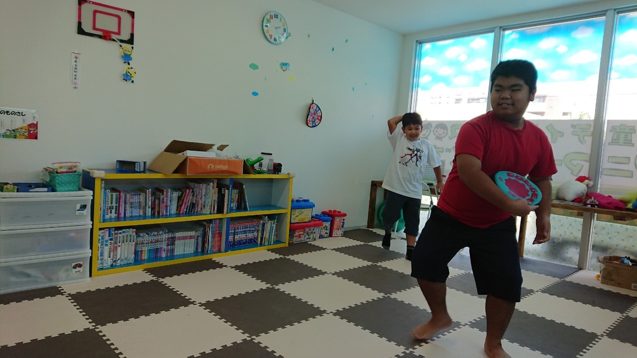 フリスビーに当たらない様に必死に逃げてます(;´・ω・)