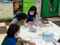 室内ではトランプや頭脳ゲームに夢中です。ルールを確認しあいながら、