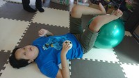 バランスボールに両足を置いて、交互にトントン(^^)